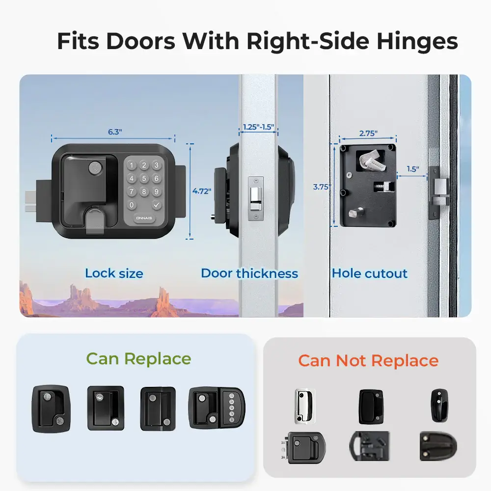 Certified to Grade 2 residential security standards (the highest for RV locks), our electronic RV door lock ensures peace of mind through triple-access methods: remote, keypad, and backu