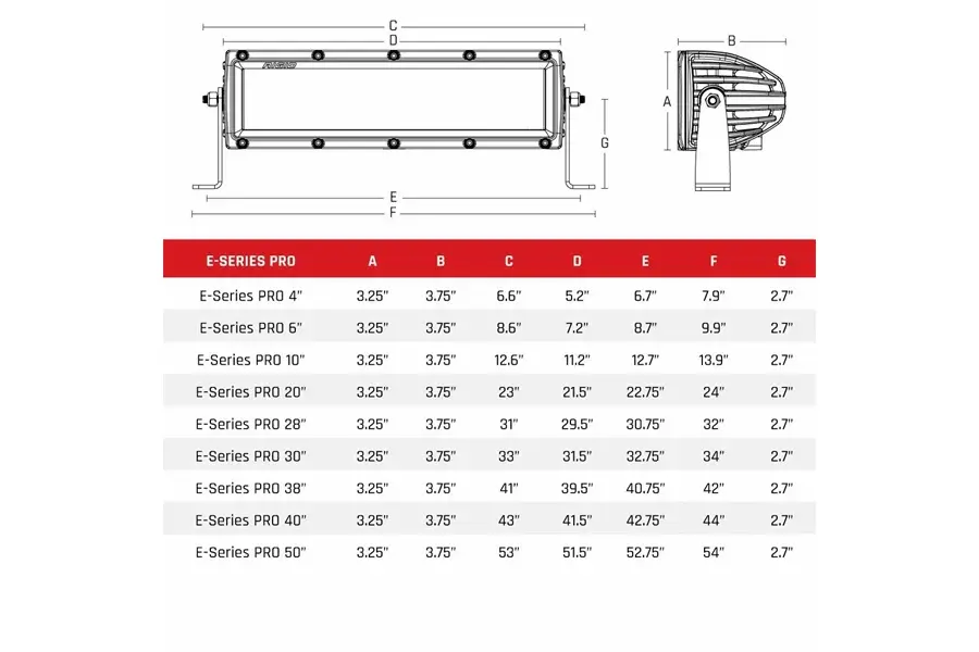 The E-Series is one of RIGID’s most versatile, all-around lighting solutions, and recent enhancements in LED technology delivering up to 111 percent more raw lumens than ever before with the E-Series PRO. Among RIGID’s most in-demand product lines, the E-Series PRO has recently benefited from several upgrades to improve both looks and performance. Plus, prominent RIGID branding and blacked-out circuit boards give the E-Series PRO a refined look. Available with your choice of optics, the E-Series features a host of beam options, including Spot, Flood, Driving, Hyperspot, Diffused, Driving/Spot Combo, Spot/Flood Combo, Spot/Hyperspot Combo, and Midnight Edition. These and other innovations make it one of the brightest and most efficient LED light bars on the market. The E-Series was born off-road, but its versatility makes it well suited for use with power sports, marine, general automotive, and even first responder applications. Own The Night with RIGID’s E-Series double row LED lightweight bar