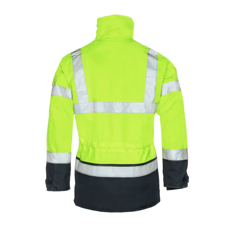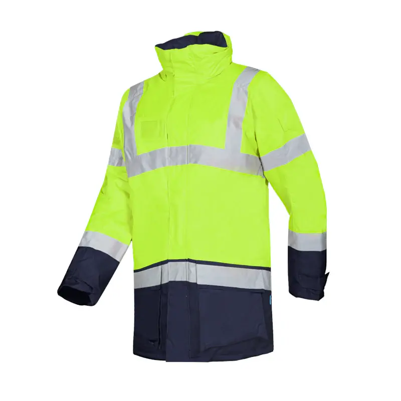 Sioen Lightflash Hi-Vis Winter Rain Jacket Yellow/Navy ★ Removable and washable interior liners ★ Multi-density EPS liner absorbs impact energy → Experience Enhanced Road Safety