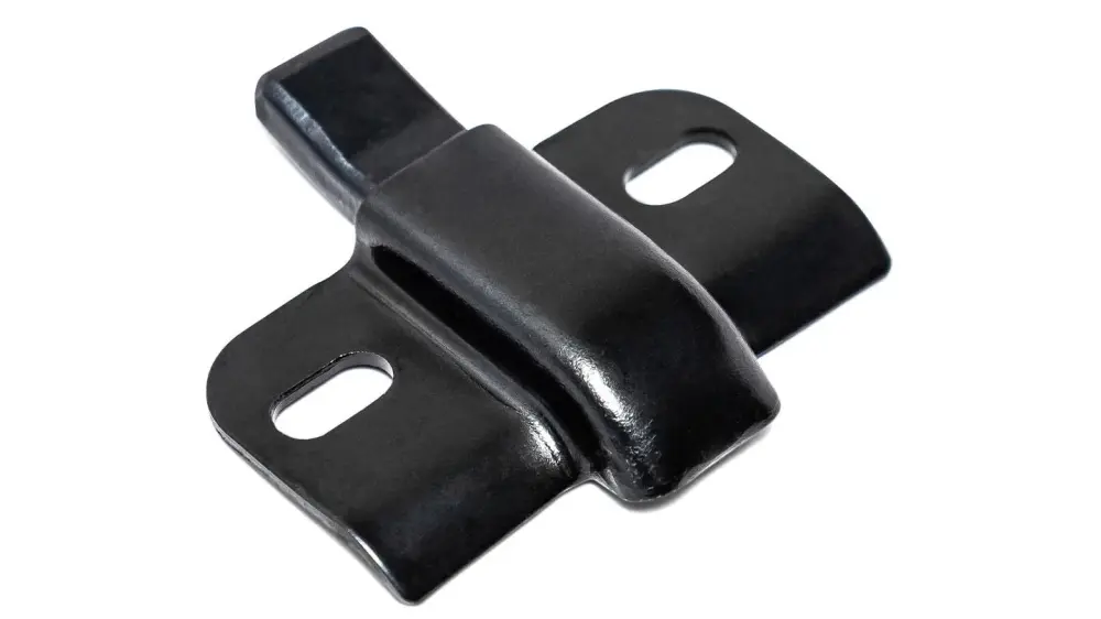 New Tailgate Anti-theft Post for 67-77 Vintage Ford Broncos. This post mounts to the top of the factory tailgate. There is a slot in the bottom of the liftgate where the liftgate meets the tailgate. The tongue of the anti-theft post slips into this slot to provide a lock preventing the tailgate from being opened when the liftgate is locked. Don’t forget the backing plate and the rubber sleeve to complete this install.