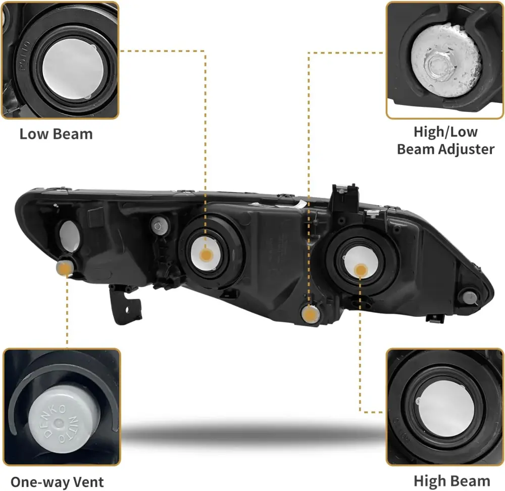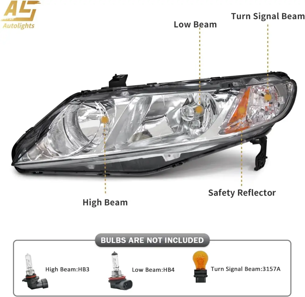 - 【Direct OEM Fitment】Headlight Assembly Replacement for 2006-2011 Honda Civic Sedan 4-Door Headlights.High Beam:HB3, Low Beam:HB4(Bulbs not included)