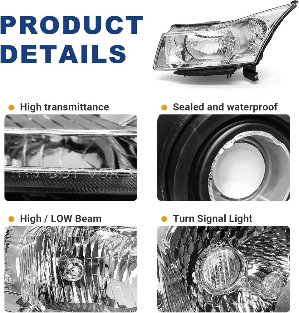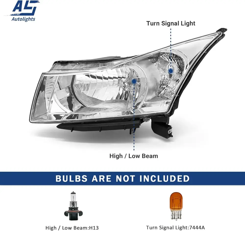 - 【Direct OEM Fitment】Headlight Assembly Replacement for 2011 2012 2013 2014 2015 Chevy Cruze LS/LT/LTZ 2016 Chevrolet Cruze Limited Headlamps.Low Beam:H13,High Beam:H13,Turn Signal Light:7444A(Bulbs not included)