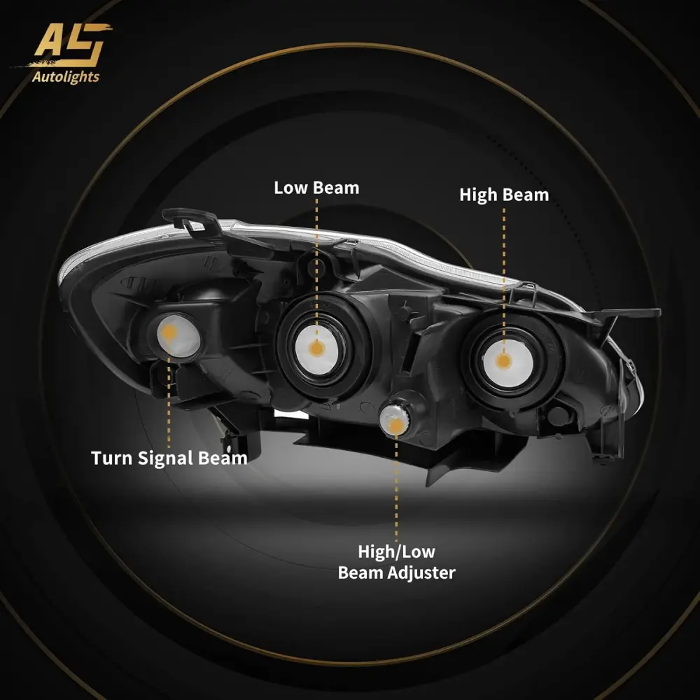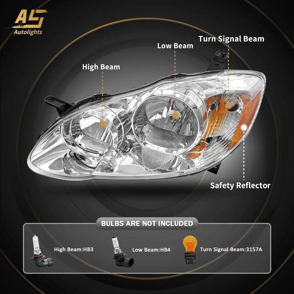 - 【Direct OEM Fitment】Headlight Assembly Replacement for 2003-2008 Toyota Corolla Headlights.High Beam:9005(HB3),Low Beam:9006(HB4),Turn signal:3457A(Bulbs not included).