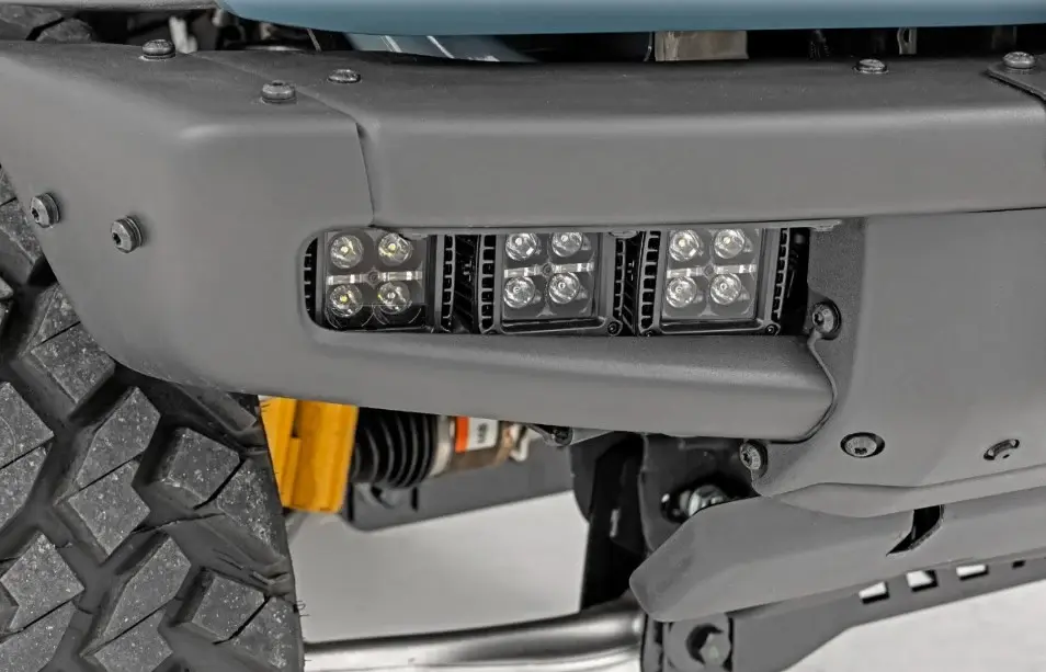 Lights Up the Night. Looking to add some serious lighting power to your Bronco? Look no further than Rough Country’s Bronco Triadic Cube Fog Light Mount Kit! This handy kit lets you fit an impressive three sets of Rough Country’s 2-in cube lights on your factory steel bumper, increasing your lighting power and visibility during nighttime adventures. Each light contains six 3-watt high-intensity Cree LEDs, providing a brighter, more focused beam of light that will help you navigate any terrain with confidence.