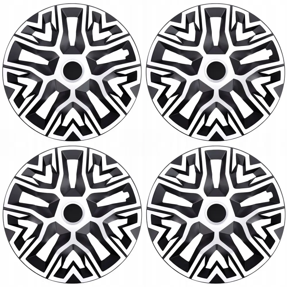 A set of high-quality hubcaps made of impact- and weather-resistant plastic. The hubcaps fit steel rims of most car brands, including Toyota, Volkswagen, Ford, Honda, BMW, Mercedes, Audi, Hyundai, Nissan, Chevrolet, Kia, Renault, Peugeot, Skoda, Fiat, Opel, Mazda, Subaru, Volvo (they do not fit only convex rims).