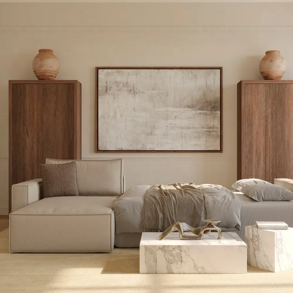 The combination of a well-built wood frame with no-zag and pocket springs with a hyper soft foam on top create a unique softness in seating as well as sleeping position. The use of no-zag spring contributes to an further layer of elasticity and allows the mattress to breathe.