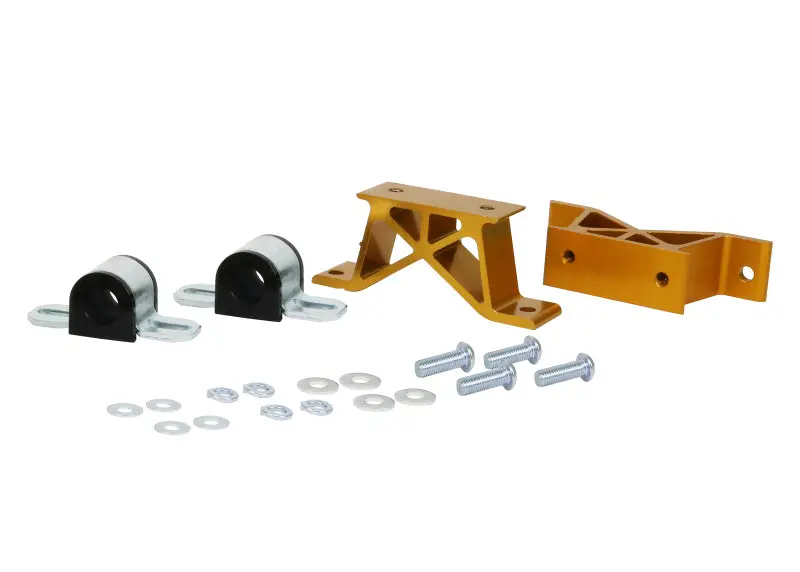 Whiteline heavy duty rear sway bar mounting saddle kits are designed to replace the original equipment mounts with a stronger more rigid forged alloy version. This Whiteline kit improves sway bar response and should be used for large diameter or adjustable sway bars especially when running the stiffer sway bar set tings as factory mounts will twist/ flex and potentially fail prematurely.