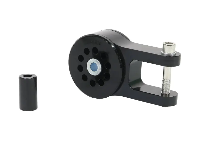 The torque arm assists in controlling the engine and drivetrain forward and aft twisting motion. The torque arm is inherently soft due to the high compliance rubber bushing design and was built for comfort and not responsiveness or feel. Whiteline’s torque arm mount bushing is built to handle the demands of high torque and power output engines by limiting the amount of movement the engine and drivetrain will place upon the pitch stop. Utilising low compliance bushing technology this eliminates the slop, twisting and shudder found in the OEM rubber bushings allowing for a faster, positive, responsive feel of power delivery on and off the throttle.